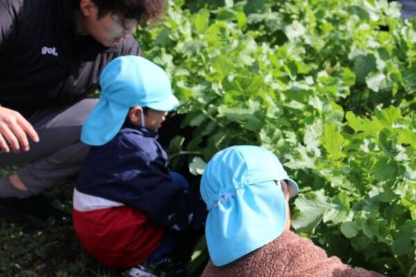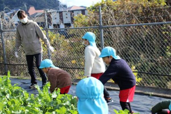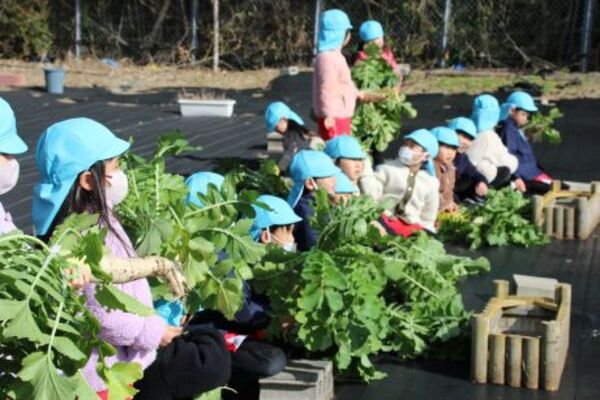 12月26日(金),ぞうぐみの子ども達は畑で大根を取りました。