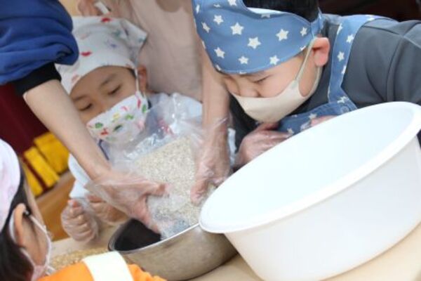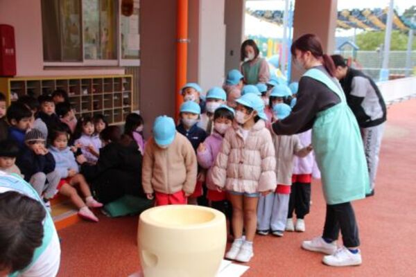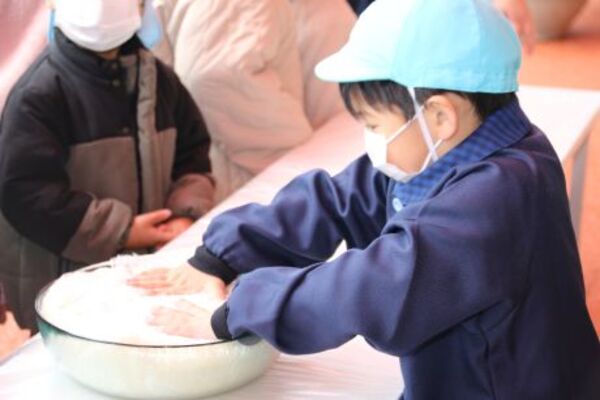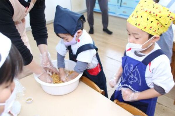1月20日(火)にぞうぐみの子ども達は,味噌作りをしました。