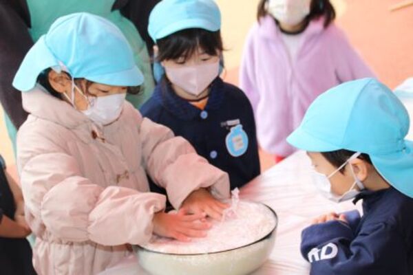 お餅がどうやってできていのか,子ども達は興味津々♪