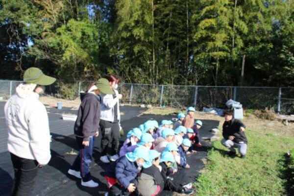 園から畑までは,車に気を付けながら,安全に歩いていきました。
